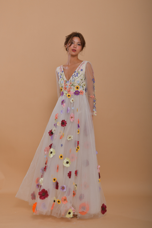 VALENTINA Floral-Embellished Silk Wedding Dress