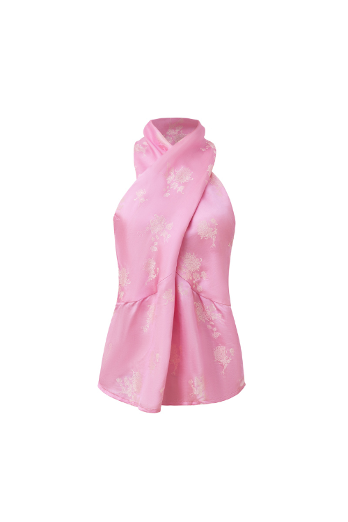 This halter top is crafted from Vietnamese heritage mulberry silk, designed to frame the neckline and shoulders with quiet elegance. The halter silhouette creates a clean, elongated line, allowing the silk to fall fluidly against the body.