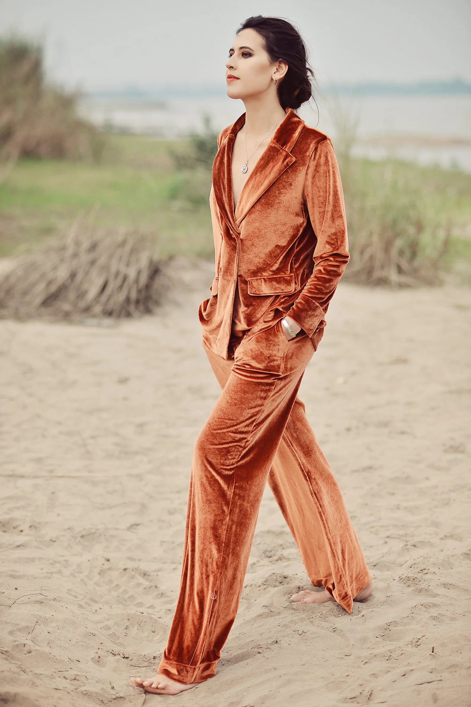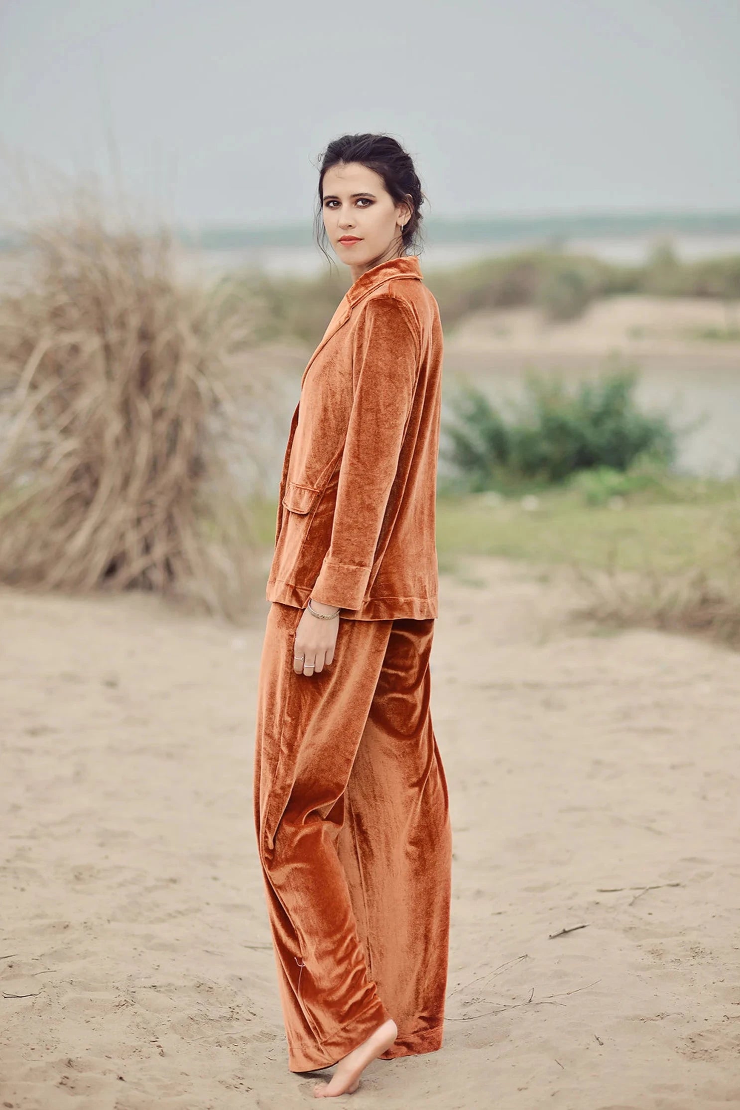 Indulge in the ultimate luxury with the BEATRICE Velvet Pajama Set. Designed for comfort and style, this set features a relaxed-fit button-up top and matching pants with an elastic waistband. Crafted from silk velvet, the BEATRICE set is perfect for lounging in elegance or enjoying a cozy night in.