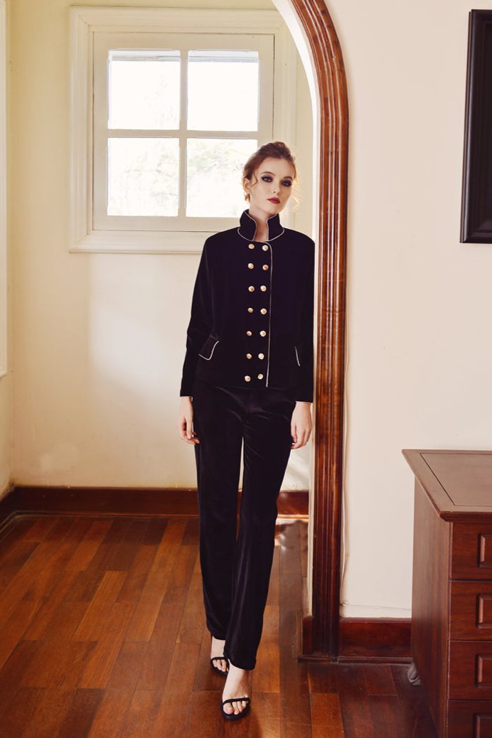 The LATRICE Velvet Long Sleeve Jacket is a versatile and chic option for cooler weather. The velvet fabric gives it a luxurious look, while the long sleeves add warmth and style. The jacket features high-quality golden buttons that enhance its sophisticated appeal, making it perfect for both casual and semi-formal occasions. The sleek, tailored design allows it to be dressed up or down depending on how you pair.