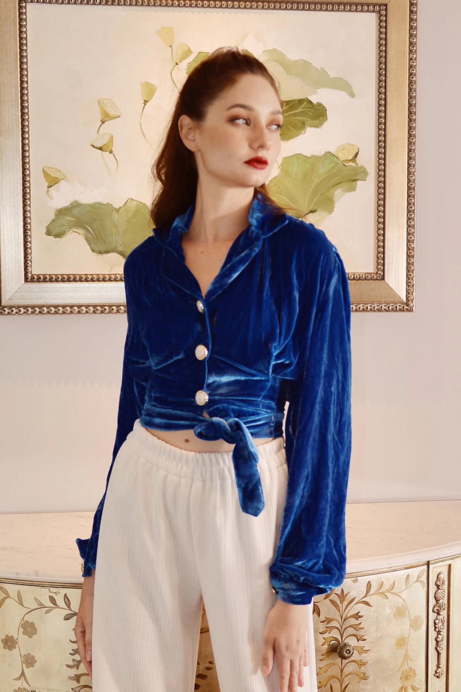 Elevate your everyday style with the BROOKE Velvet Long Sleeve Wrap Top. Crafted from rich, soft velvet, this top features a wrap design that ties elegantly at the waist, creating a customizable fit. Its long sleeves and timeless silhouette make it a versatile addition to your wardrobe, perfect for everything from casual outings to sophisticated evenings.