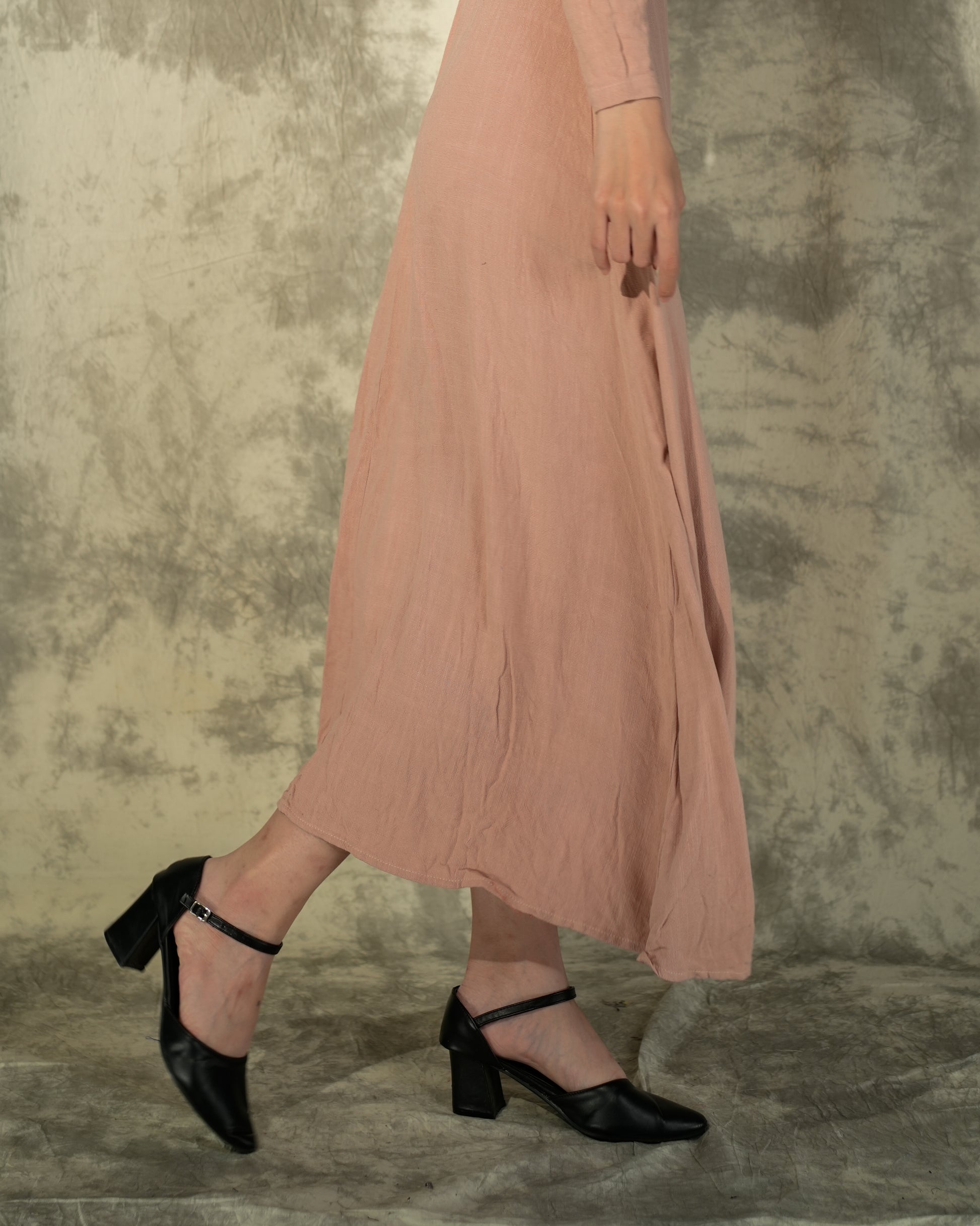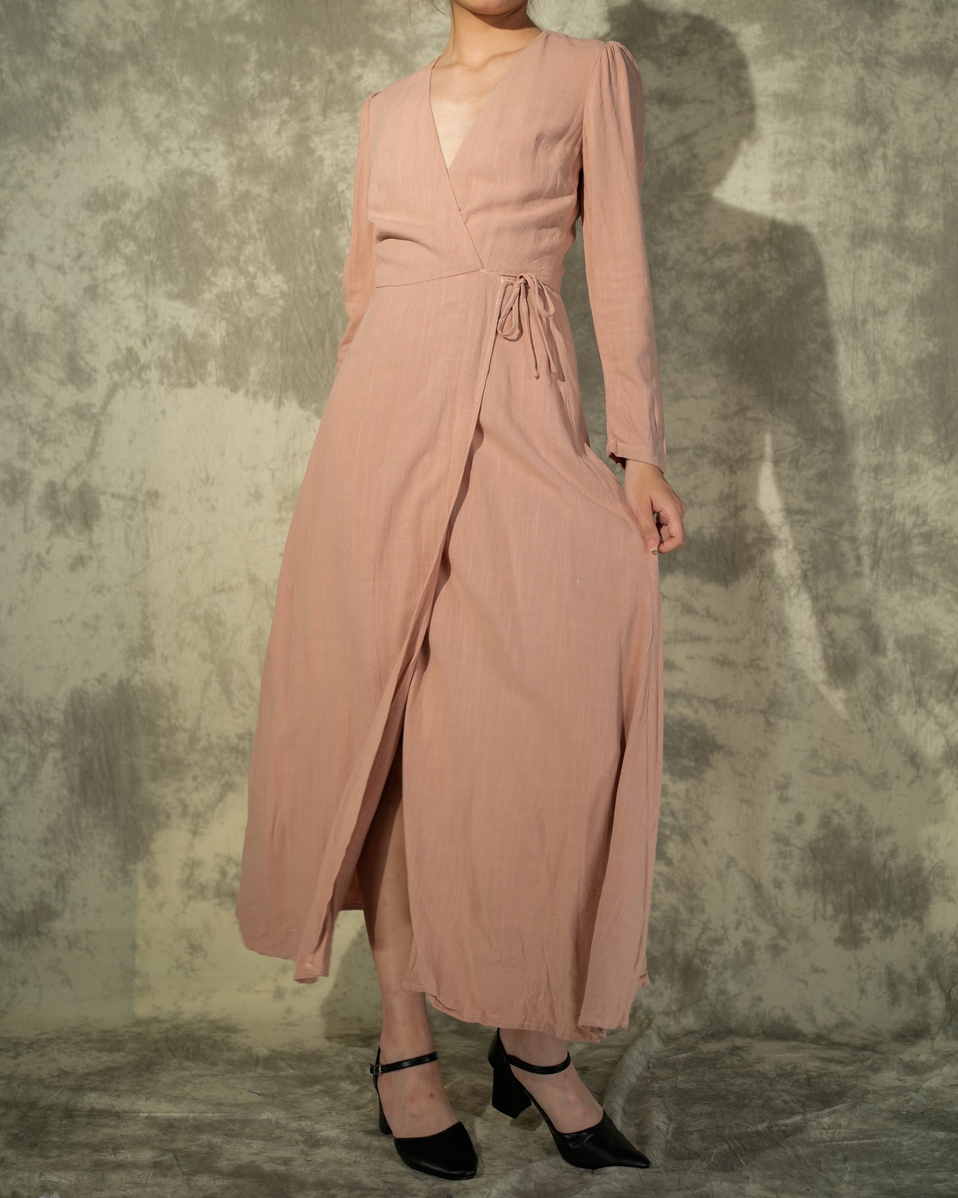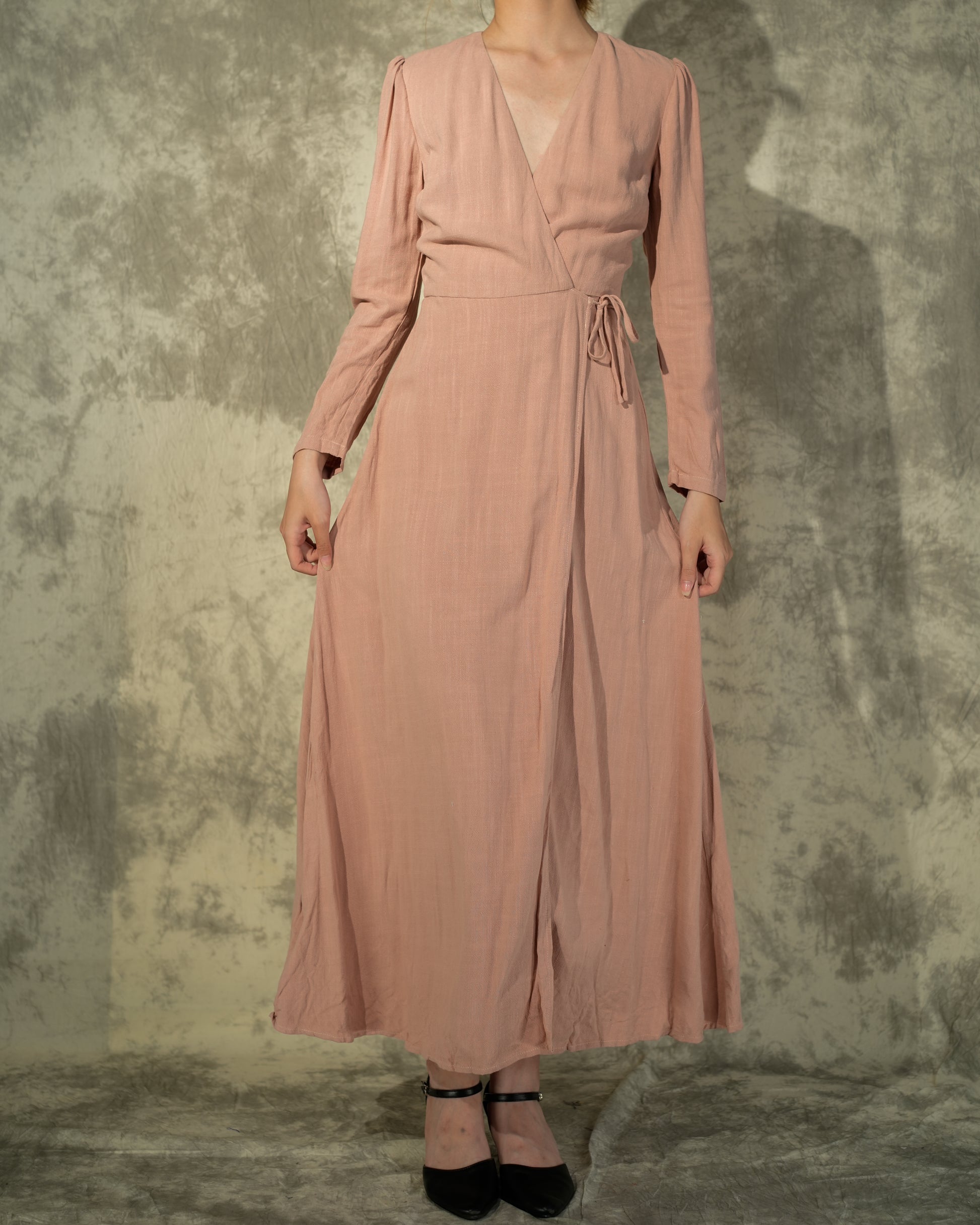 Long Sleeve Linen Maxi Dress - Pink Nude- Like New- Worn Once For Photoshoot