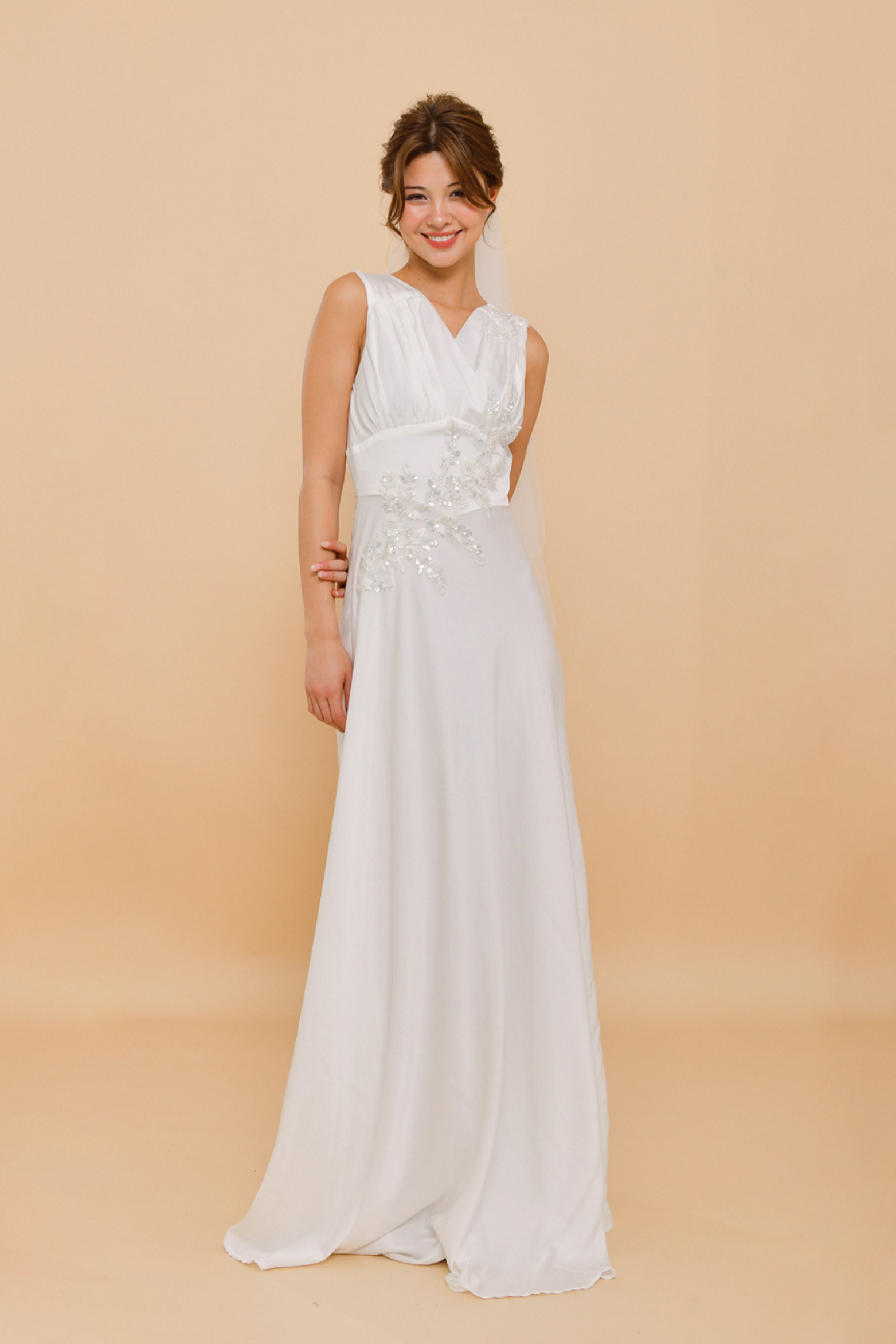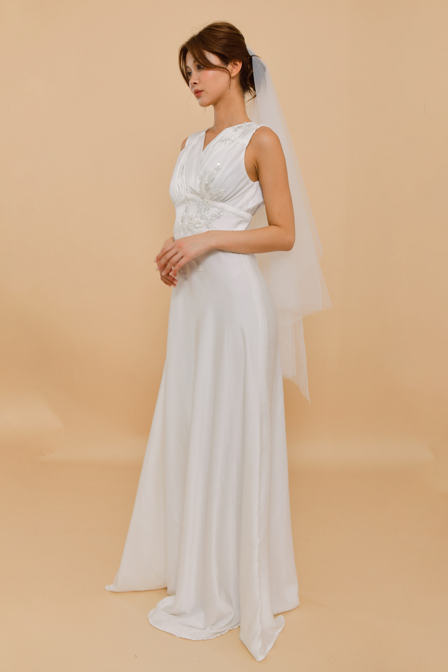 The MARIELLE Embellished Silk Wedding Gown exudes sophistication with its asymmetrical draped bodice and cascading embroidered details. Designed in pure mulberry silk, this dress offers a graceful fit-and-flare silhouette that flows beautifully as you walk. Perfect for brides seeking a blend of modern elegance and classic charm.