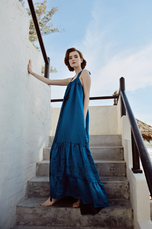 MONICA Open Back Silk Gown is a flowing masterpiece is designed to make a statement, with a dramatic open back and a graceful, voluminous silhouette. Its adjustable ties allow for a customized fit, while the luxe silk fabric catches the light beautifully, adding a hint of sophistication to any setting. Ideal for wedding guest dress, events and themed parties.