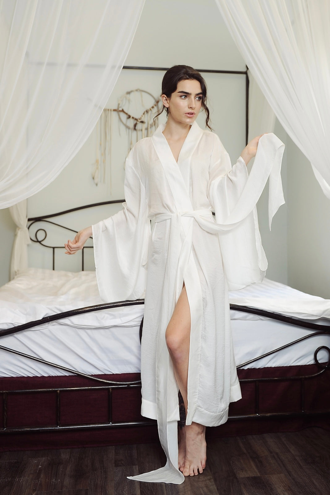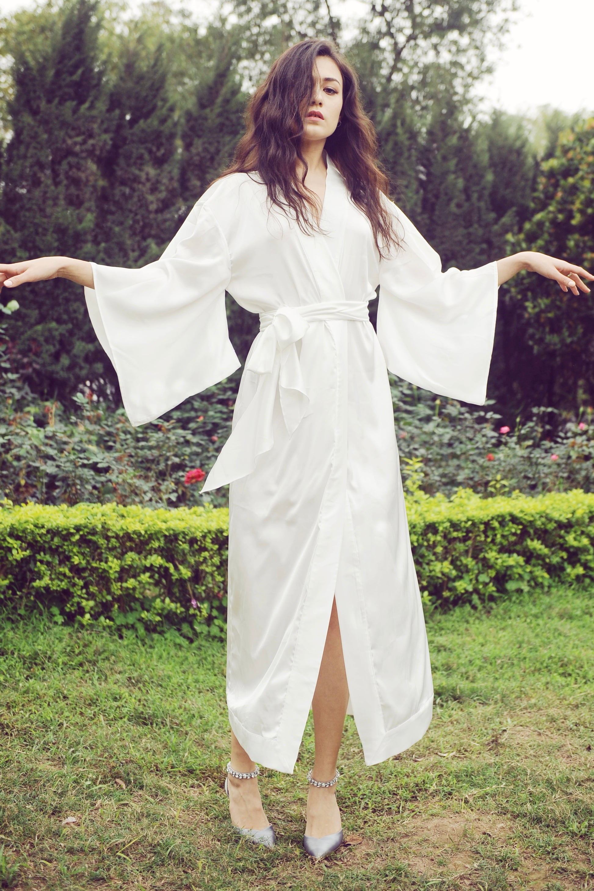 Wrap yourself in the graceful elegance of the Diana silk kimono robe, designed to elevate your lounging moments with a touch of luxury. With its smooth, flowing silhouette and wide sleeves, this robe brings effortless sophistication to your relaxation time. The rich fabric drapes beautifully, making it the perfect piece to unwind in style or to layer over sleepwear.