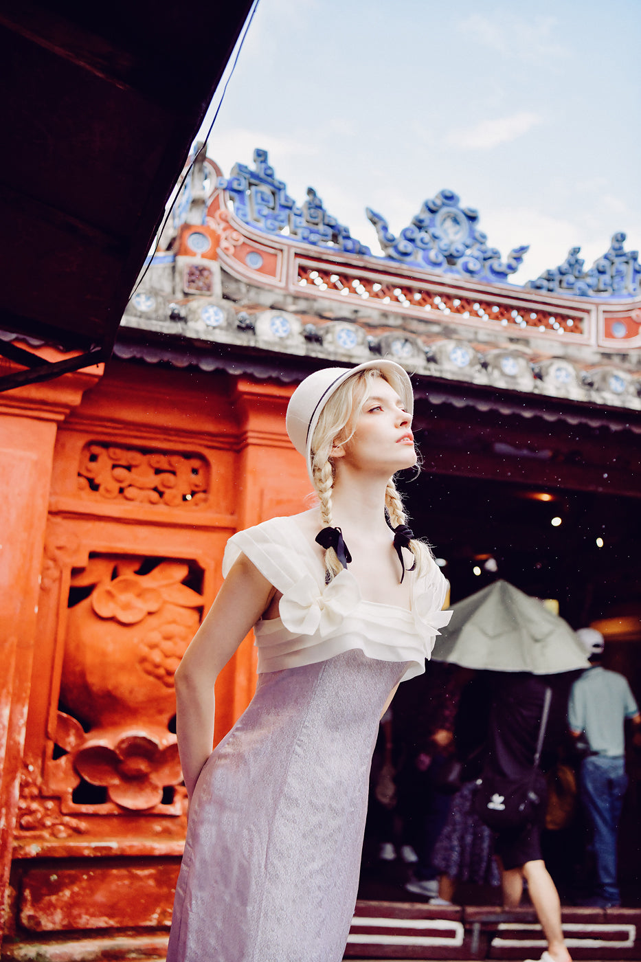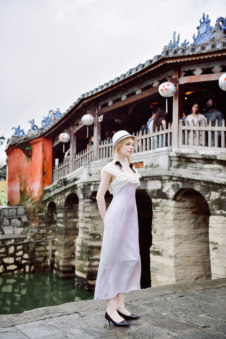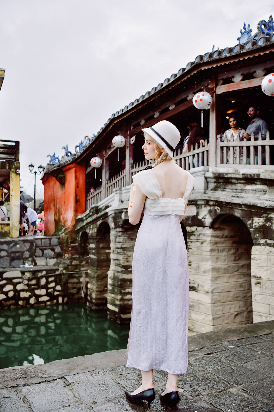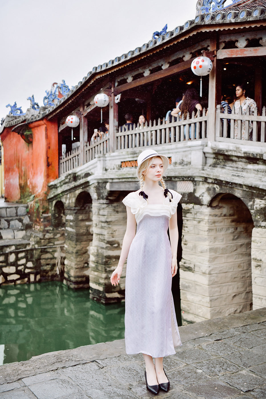 Roseline is a midi-length dress crafted from Vietnamese heritage mulberry silk, defined by a structured silk organza bust that brings shape and clarity to the silhouette. The organza adds gentle stiffness and support, creating contrast against the fluid softness of the silk.