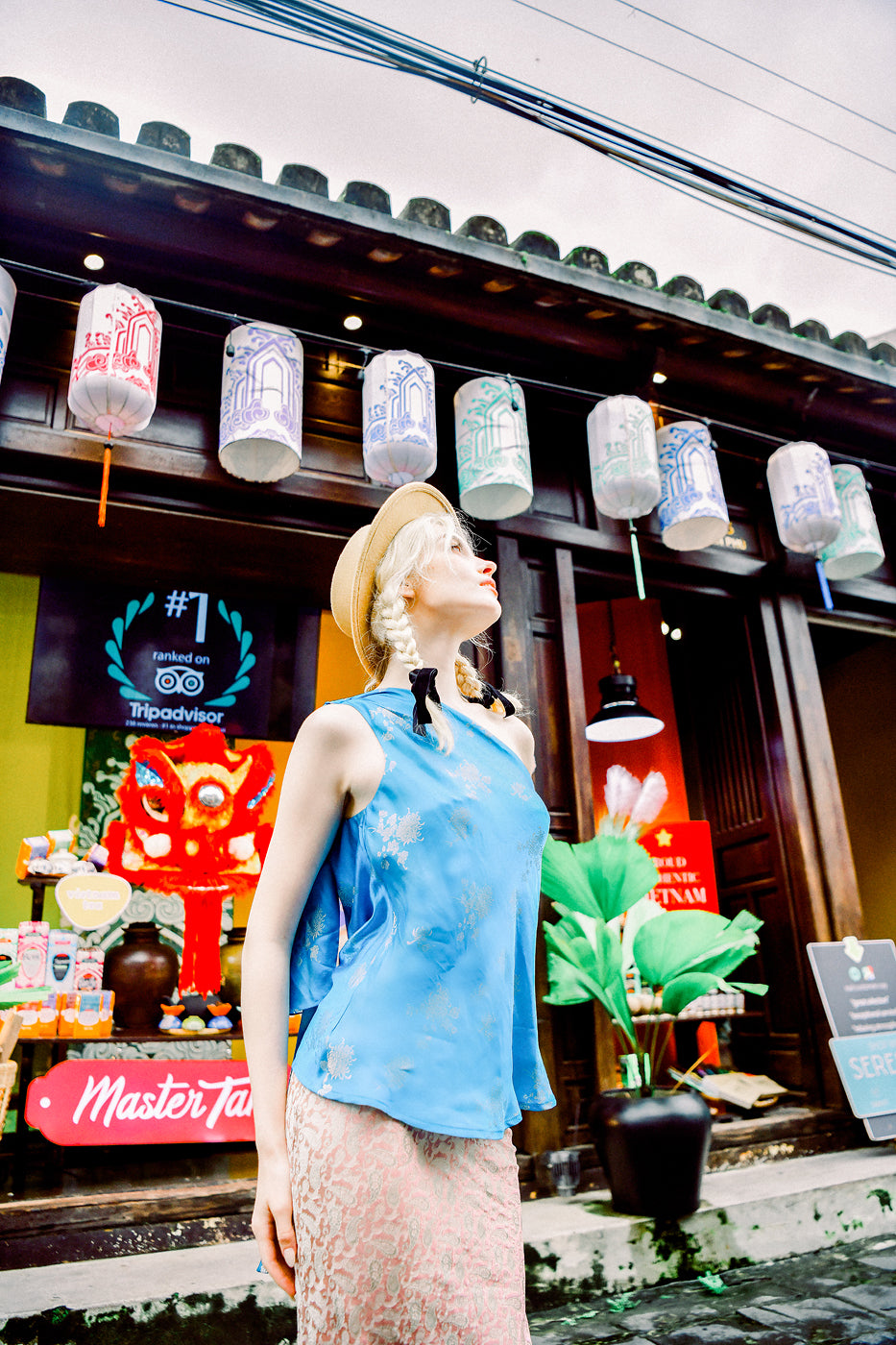 Crafted from Vietnamese heritage mulberry silk, this asymmetric silk tie top is defined by its one-shoulder silhouette and fluid, graceful drape. Soft silk ties allow for an adjustable fit, adding movement and ease to the design.