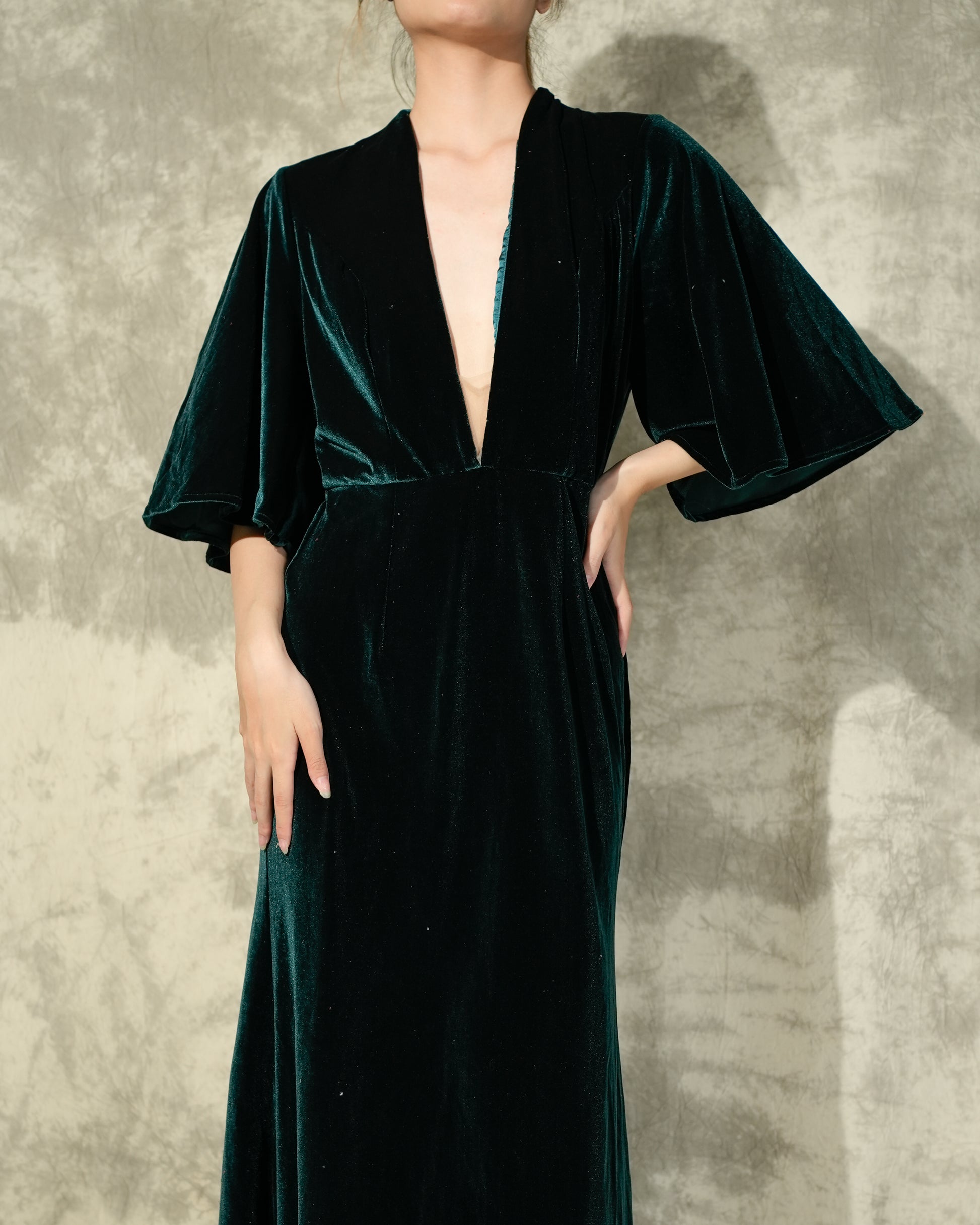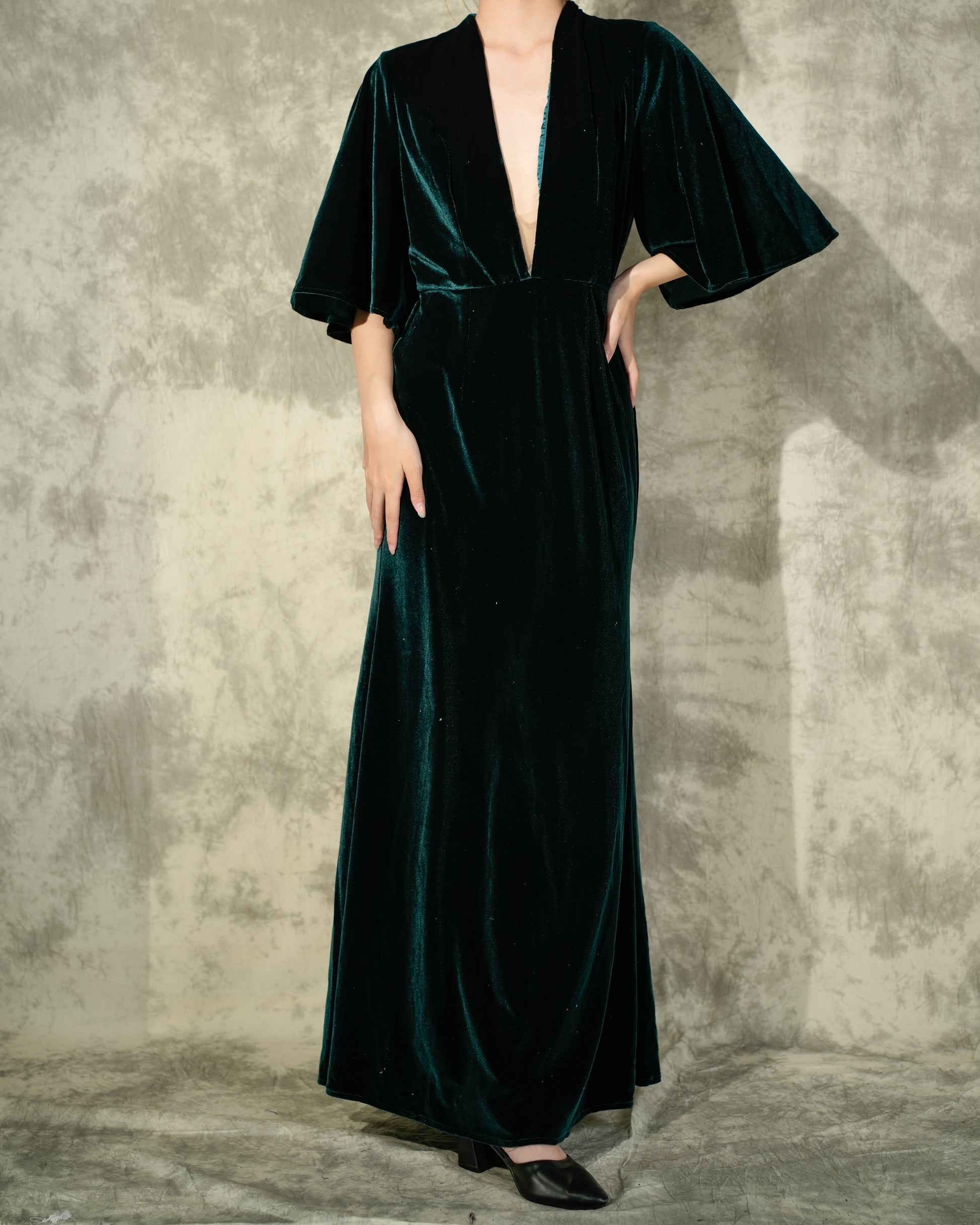 Velvet Long Gown- Forest Green- Like New- Worn Once For Photoshoot