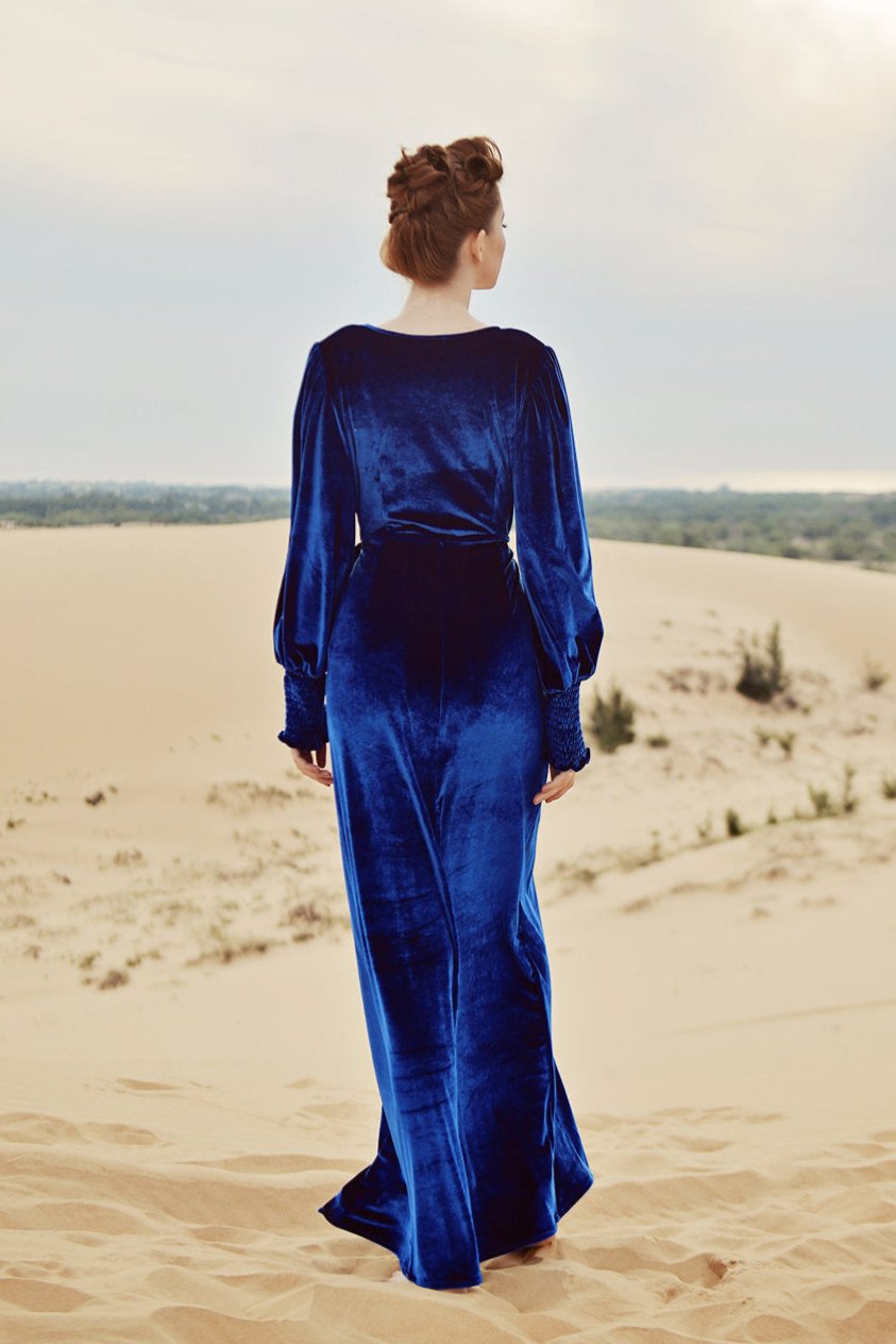COURTNEY Velvet Long Sleeve Wrap Dress